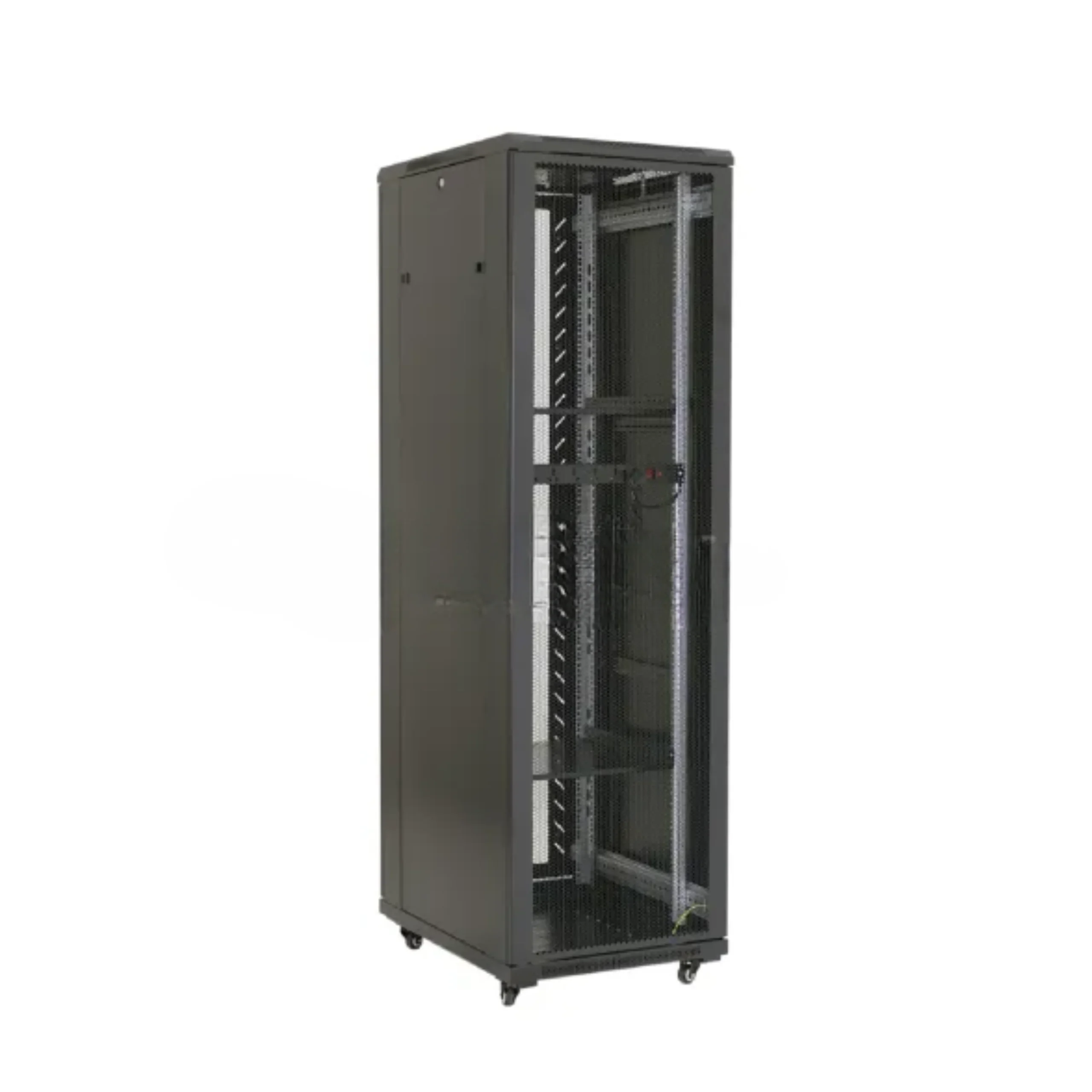 With a spacious height of 2000mm and a robust frame constructed from high-quality cold-rolled steel, this cabinet is engineered to support up to 800 kg of weight, making it ideal for accommodating dense server configurations and heavy networking devices.The cabinet features a sleek electrostatic powder-coated finish, providing both corrosion resistance and an appealing aesthetic that blends seamlessly into any professional environment.