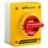 Built to withstand harsh conditions, the switch is housed in an IP65-rated enclosure, offering protection against dust and water ingress. The durable construction includes high-quality polycarbonate or metal, with an ergonomic handle that can be padlocked for additional security, preventing unauthorized operation during maintenance.