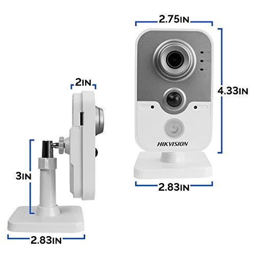 DS-2CD2442FWD-IW Hikvision 4MP Wi-Fi Network Cube Camera has a 1/2.8″ progressive scan CMOS to capture 2688 x 1520 resolution video at up to 20 fps. 4MP Wi-Fi camera has a night vision range up to 33′. DS-2CD2442FWD-IW has 2.8mm fixed lens that delivers a wide 105.8° horizontal field of view.