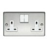 Powermax Metal Socket 15a Switch Twin offers a sleek and slim profile with softly rounded corners. This is part of a superior range of quality products that will compliment any interior decor around your home. Powermax Metal Socket 15a Switch Twin range benefits from a modern slim profile and no visible plastic around the switches.