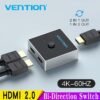 Overall, the Vention 2 Port HDMI Bi-Direction Switcher is an essential accessory for anyone looking to enhance their audio-visual experience. Its combination of high-resolution support, versatile switching capabilities, and user-friendly design makes it a valuable tool for managing HDMI connections efficiently.